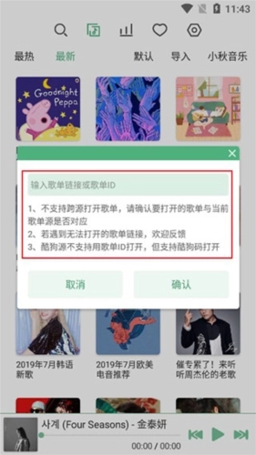 且支持导入歌曲,只需输入歌单的链接或歌单ID即可;