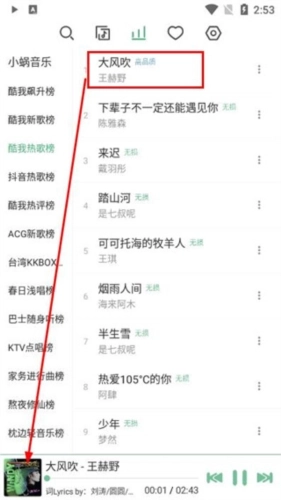 罗列了各大音乐软件对应的热歌榜、飙升榜等各种榜单,方便用户根据自身喜好选择不同歌曲。