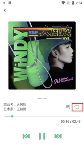 2、进入到播放界面,点击歌词下方的心