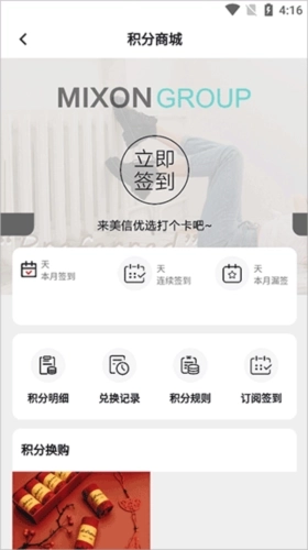 1、打开美信优选商城,在“会员中心”板块里找到并点击“积分商城”按钮;