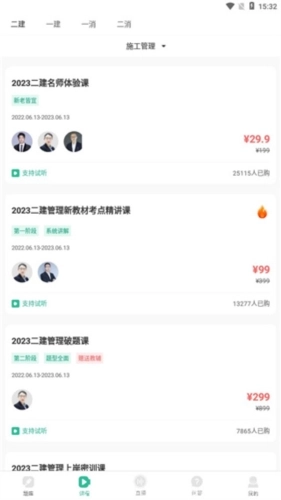6、点击进入课程板块,这里为用户准备了丰富多样的学习课程资源,其中有部分课程需要付费后才能解锁使用。