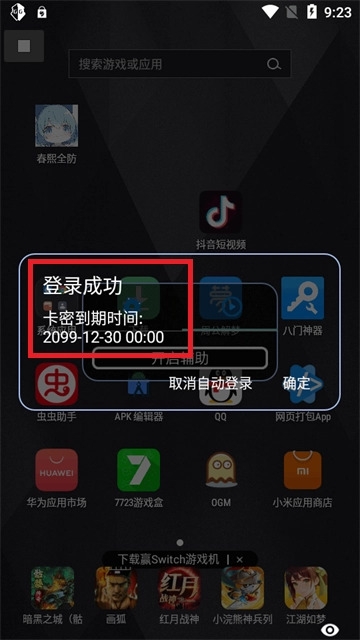 6、随意输入卡密即可登录成功。