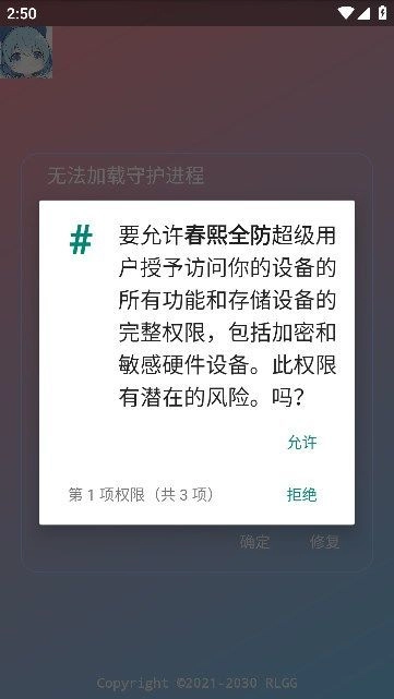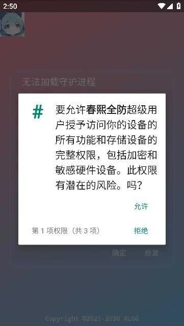 4、软件需要获取相应的权限,点允许。