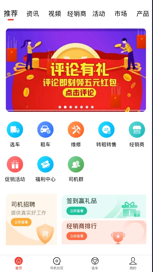 2、在应用的首页的推荐页面, 查看最新的动态信息,在线评论动态