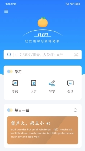 JUZI汉语是万有知典(北京)数字传媒科技有限公司开发的一款实用的汉语学习软件,借助它能帮助大家更高效地学习语文,平台上丰富的优质学习资源正等待你探索使用!而且在JUZI汉语安卓版里,还有专业老师提供在线答疑服务,你可以随时发起提问,轻松解决遇到的难题。要是你也想提升汉语学习效果,不妨赶紧体验一下这款软件吧!
