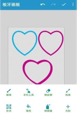 集成画笔、手型工具、橡皮擦、线条、形状、填充、喷雾器、光标、文本、图章、变形、导入图片等各种绘图工具