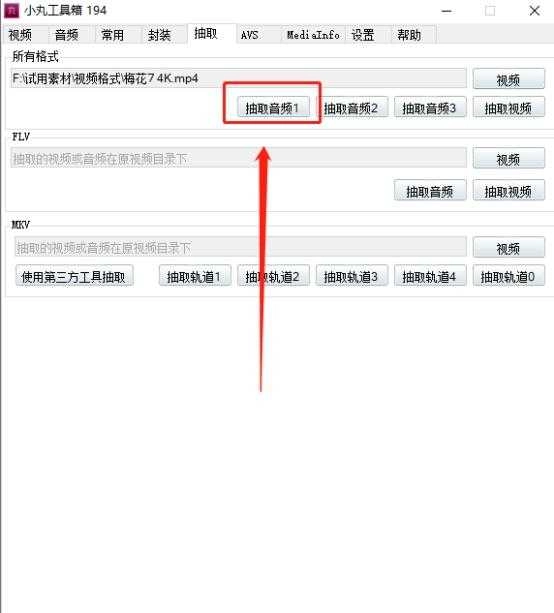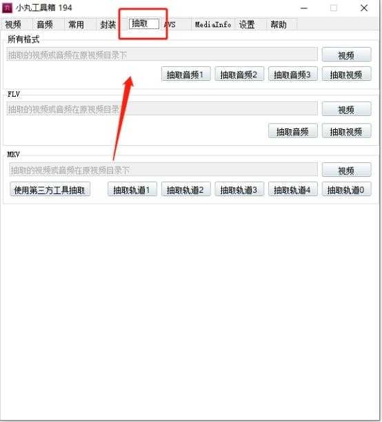 ①启动小丸工具箱软件,进入主界面后点击【抽取】按钮。