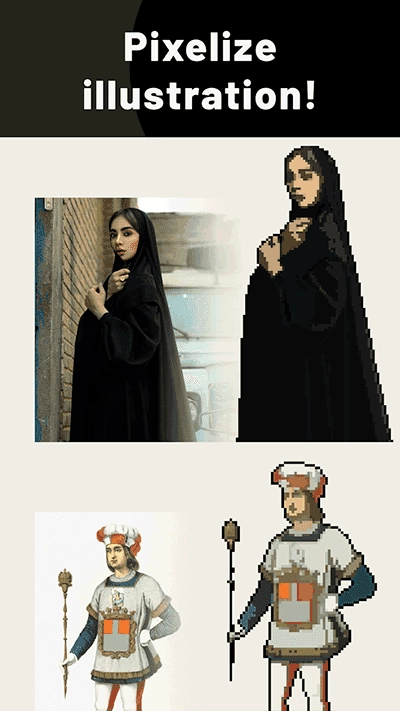 3.像素画质拥有非常简单的图像,带来了更多样的风格,所有照片都可以像素化。