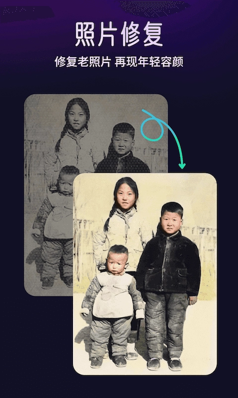 4、具备强大的照片修复能力,只需一键操作,就能让带有深度划痕、画面模糊不清、像素偏低或是残旧破损的老照片恢复原貌。
