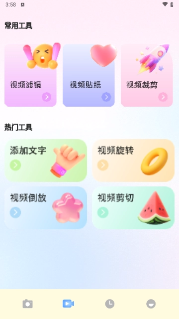 4. 特效添加:提供丰富多样的趣味贴纸、文字以及动态特效,助你轻松创作出精彩的作品。