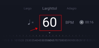 1、打开节拍器节奏训练软件后,点击当前的数值。