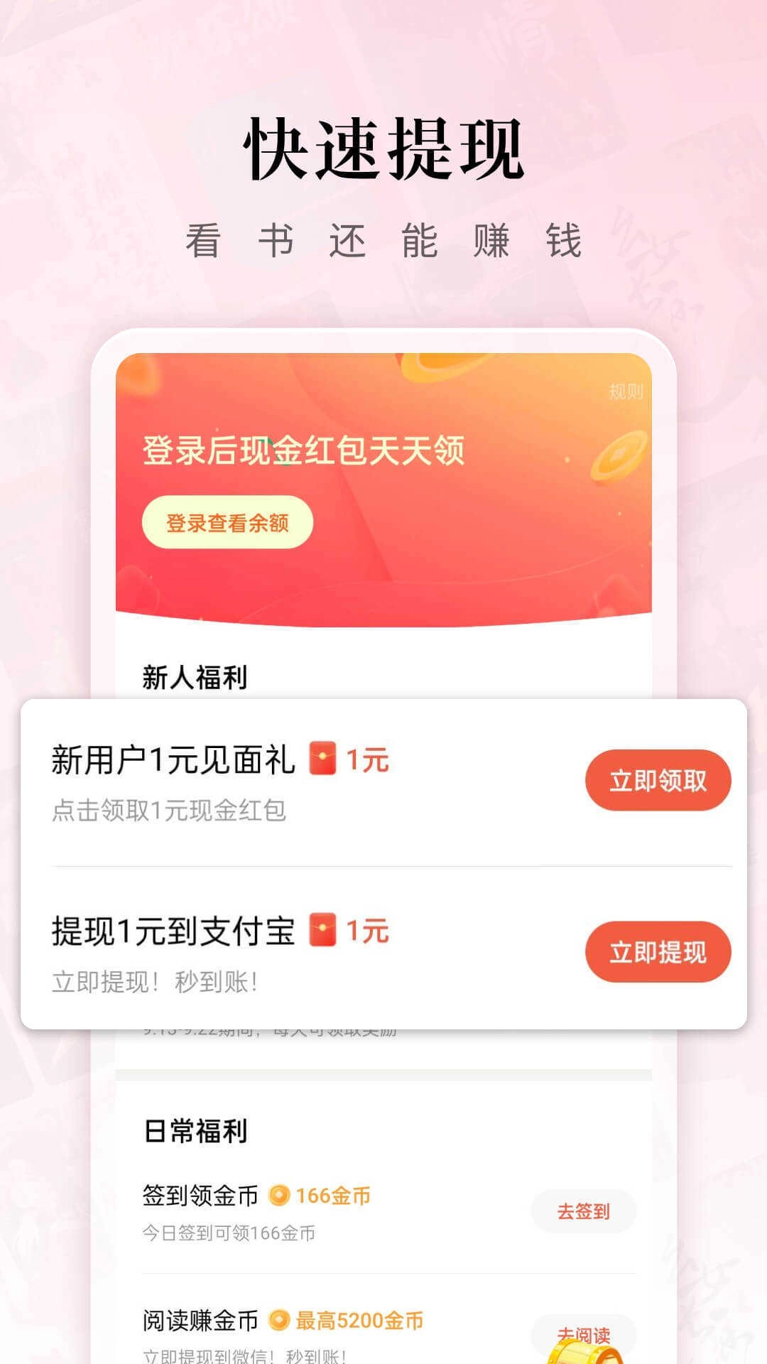 签到阅读看剧赚金币,提现秒到账,看越多赚越多