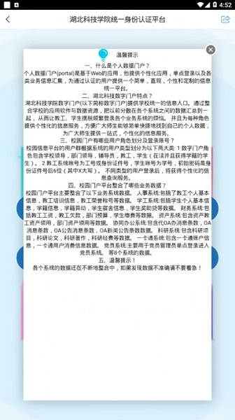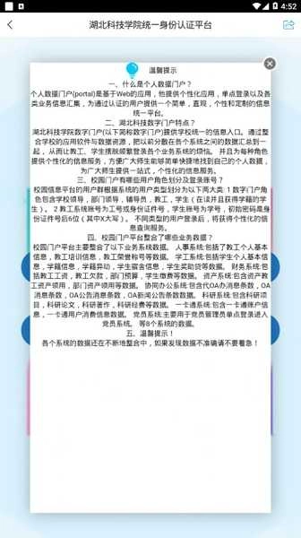 由湖北科技学院信息化办公室负责建设与运维,数据与校内统一身份认证系统对接,各项业务流程均遵循教育信息安全规范。用户无需重复注册,通过一键登录就能使用所有服务,切实达成“一次认证、全程通行、数据可信、使用安心”的目标。