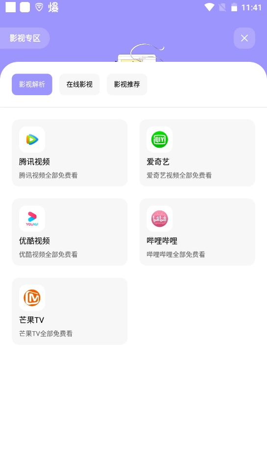6、点击“影视专区”可以免费查看各种影视