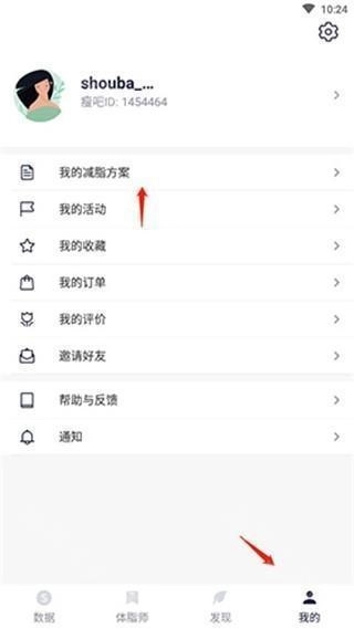 1、打开瘦吧减脂,点击底端的“我的”选项,然后点击“我的减脂方案”选项。