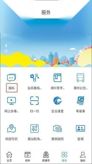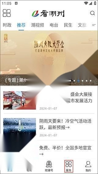 1、打开看潮州的主界面上点击“服务”;