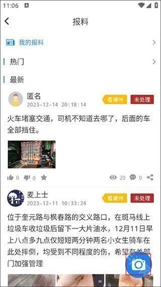 3、紧接着在报料的页面上点击“拍照”图标;