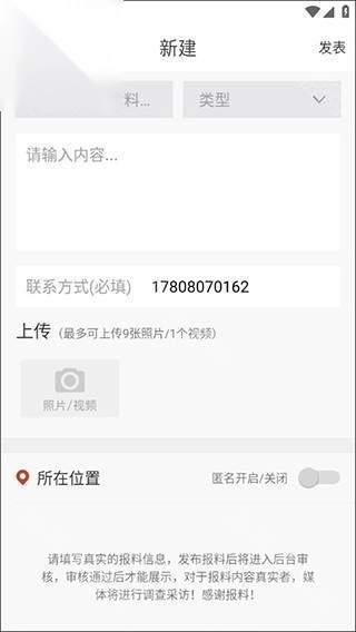 4、最后按照需求填写相关内容,上传照片或视频等素材,点击“发表”按钮就可以完成操作了。