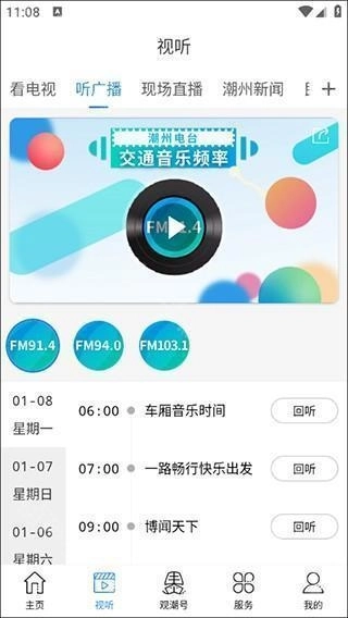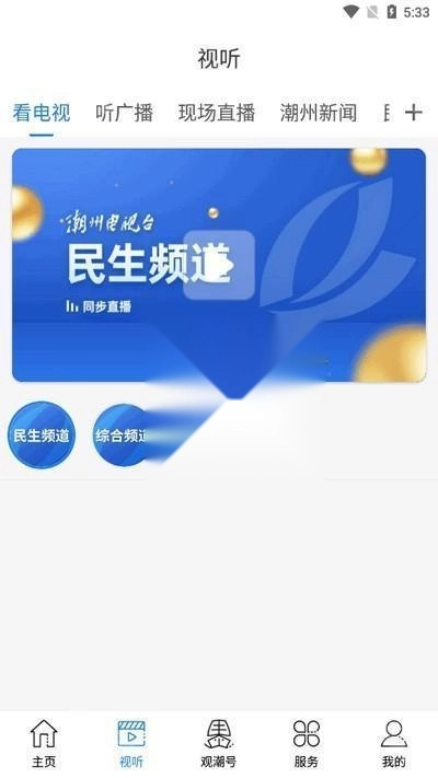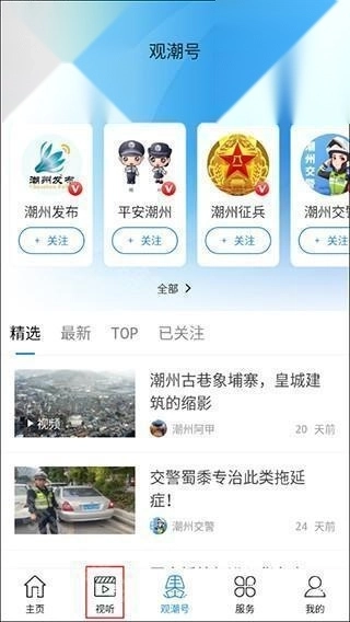1、在看潮州的首页上点击“视听”;