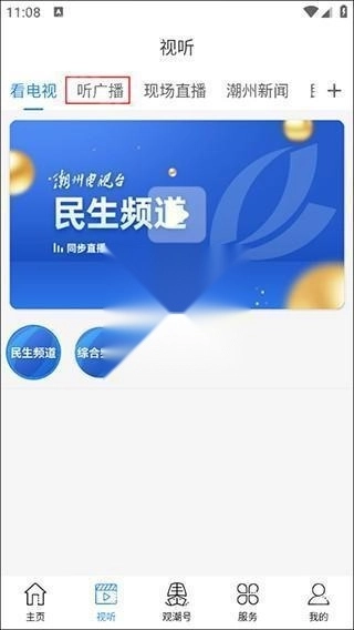2、进入视听的页面上点击“听广播”;