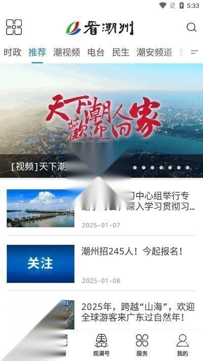 看潮州是一款十分实用的新闻应用,能让用户自主获取所需的新闻信息,还可实时知晓新闻动态。无论何时都能便捷浏览感兴趣的新闻,掌握各领域的热点内容。它为用户提供更丰富的新闻资讯,便于用户阅读查看,涵盖视频、文章、图片等多种形式。