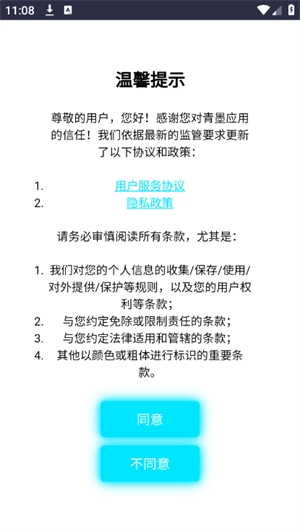 1、打开青墨应用商店,点击同意软件政策;