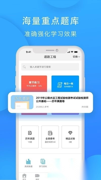 基于历年真题考点和大数据分析,我们开发了全真模拟、章节练习、考前密卷以及易错题集等功能模块;每一道题目都附带详细解析和个性化学习报告,能够精准定位学习薄弱点,帮助用户实现高效提升分数的目标。