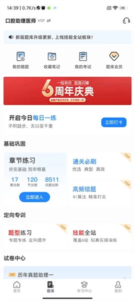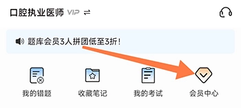 1、进入七颗牙学堂的题库版块,点击会员中心;