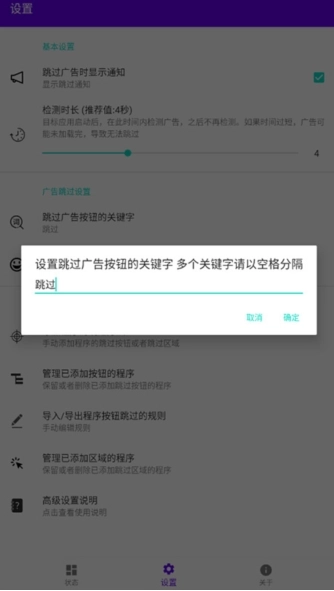 2、自定义设置:用户可依据自身需求,自行设定想要跳过的广告类型与数量。