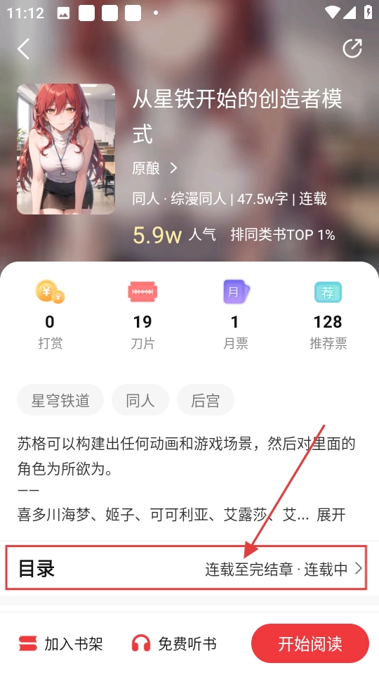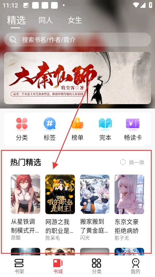 1、可以在书城的热门精选区域挑选自己感兴趣的书籍,像《从星铁开始的创造者模式》就很不错,选好后点击进入该书的详情页面即可。