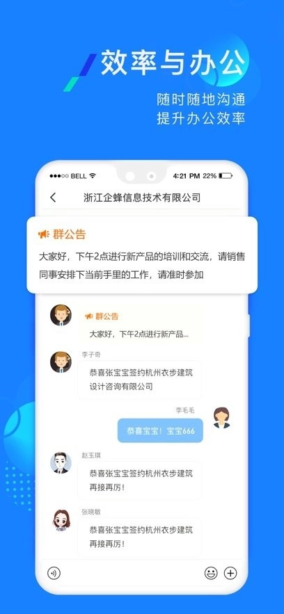 企蜂云是一款自主研发的移动化客户管理软件,具备即时IM通讯、客户管理、签到拜访、工作日志、团队管理等丰富功能,能够助力企业搭建组织内部的高效协作体系,推动组织效率提升与企业业绩增长。