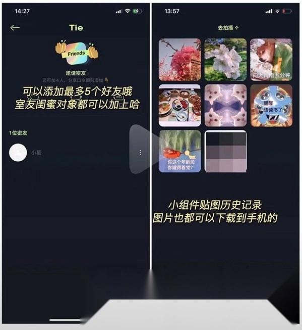 3、最多可以添加5位好友,并且能够查看自己曾经发布过的历史照片记录。