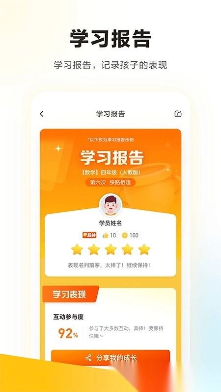 学习报告可集中查看,作业提醒能及时接收;学习动态板块会清晰呈现孩子在学而思各课堂的学习报告、作业讲义、批改进度以及在线作业提醒,助力家长全面了解孩子的学习综合情况。