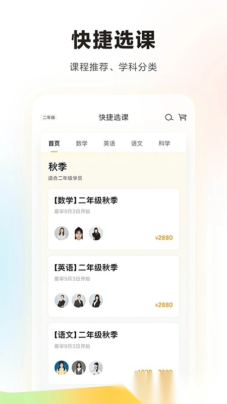 想要在学而思给孩子报课?这款应用的课程查询和筛选功能十分强大,还能在线缴费;家长不用出门,就能随时为孩子选到合适的班级和授课老师。