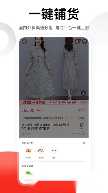 17货源是广州一起做网店打造的专业服装批发应用,汇聚了广州、杭州、揭阳普宁等地的服装批发市场资源;平台涵盖女装、男装、箱包、鞋类等一手货源,具备一键上传、以图搜款和一件代发功能,适用于淘宝卖家与微商开店进货。