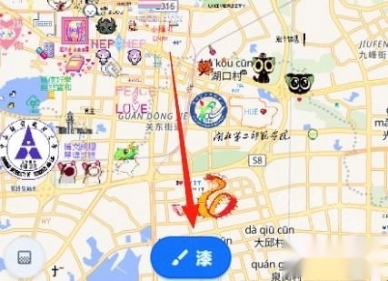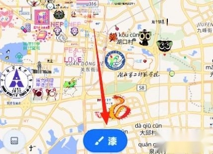 2、用户可以随意在全球地图上选择地点,并用像素风格的图案进行绘制。