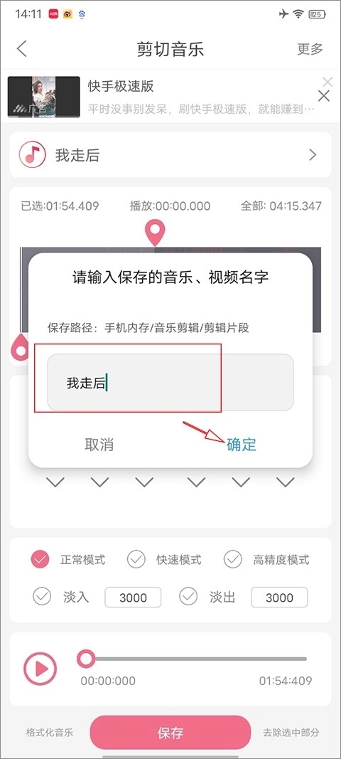 设置好你想要截取的音乐片段后,下方会有一个播放键,通过它你可以试听刚才截取的那部分内容,确认无误后点击保存即可。