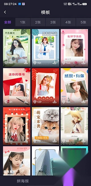 2、选择【拼海报】功能进入,这里为用户提供了大量海报模板,所有模板都可供用户使用。