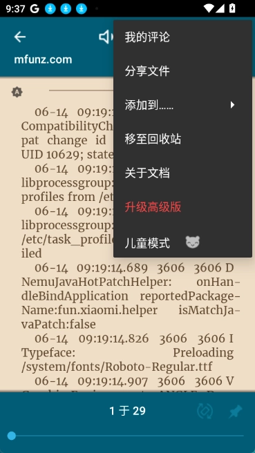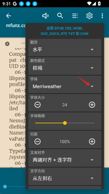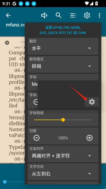 2.进入阅读界面后,可以通过菜单调整字体大小、颜色模式、翻页效果等。