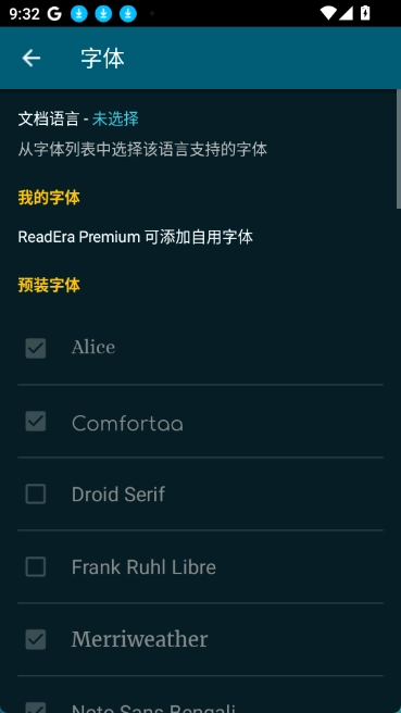 4.然后勾选要预装的字体。(ReadEra Premium 可添加自用字体)