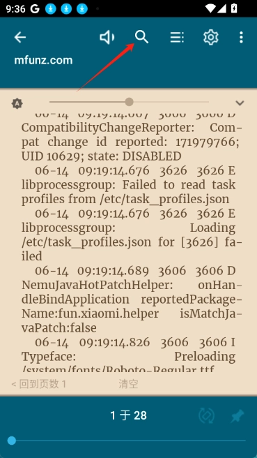3.点击右上角的“放大镜”图标,可以搜索文本。