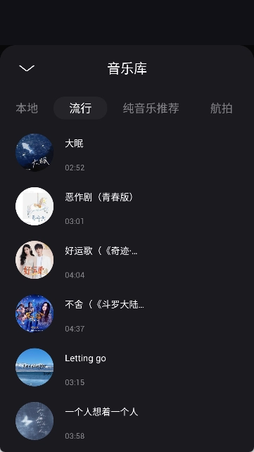 6. 也可以选用软件的音乐库中的曲目。