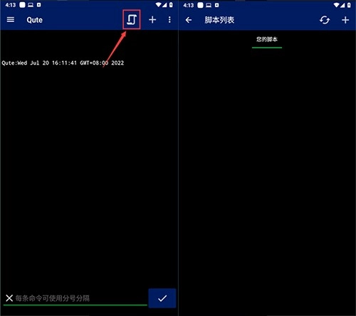 2、点击右上角“+”,可以创建新的命令窗口。