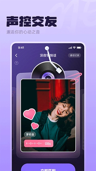 声动匹配功能:用户只需点击一键,即可快速匹配到陌生人并进入聊天界面。该功能的设计初衷是为了在用户感到孤单时提供陪伴,让大家能够通过声音的媒介结识新的朋友。