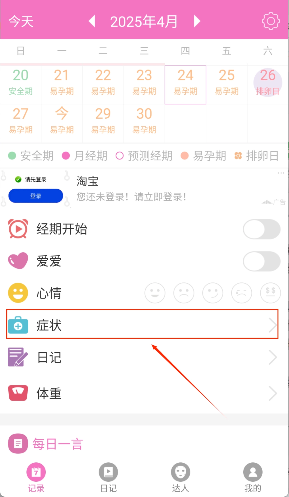 1、全方位周期记录系统支持记录基础体温、宫颈黏液等20+生育指标,专业模式满足备孕人群需求,辅助医学诊断。