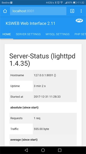 KSWEB是一款服务器工具软件,具备一键搭建功能,界面简洁直观,用户无需掌握复杂的服务器知识就能快速部署服务器。它集成了lighttpd、nginx和Apache等多种服务器组件,可满足多样化的使用需求,同时支持内网与外网IP地址访问,方便在局域网或互联网环境下使用。此外,该软件还提供FTP服务,便于文件管理,旧设备也能利用它作为FTP服务器。