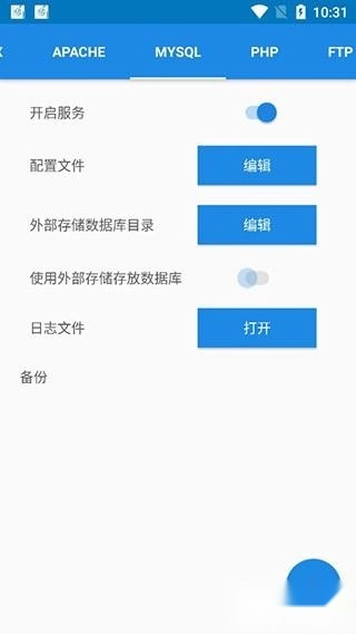 3、数据库同样重要,这里提供了mysql的开启功能以及日志查看功能;