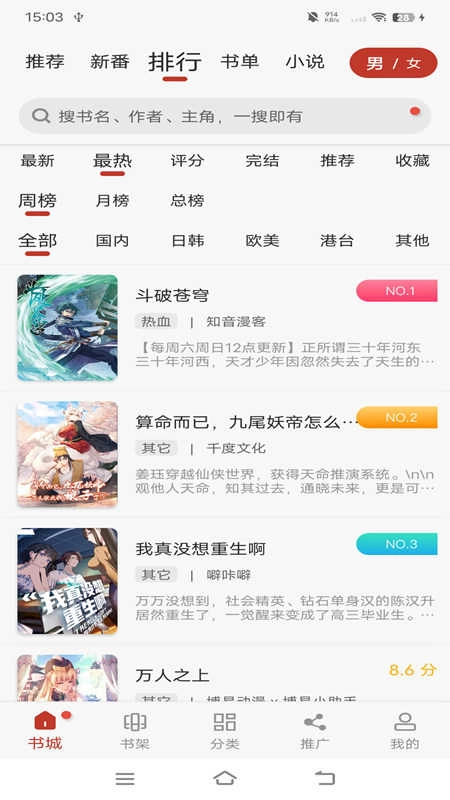 2、同时你也可以通过搜索栏来搜索漫画资源;