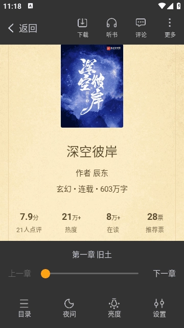 【极致阅读享受】具备自动书签与续读功能,提供夜间模式及多样设置选项,支持离线阅读,预加载技术确保阅读过程零延迟,带来更出色的使用体验。