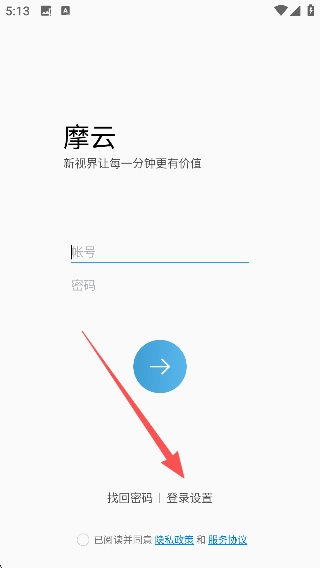 1、在摩云平台的登录界面,点击“登录设置”选项,进入登录相关的配置页面。